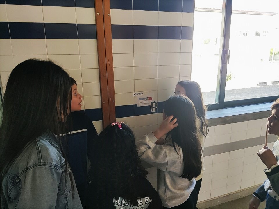 Após esta dinamização, à qual assistiram entusiasticamente, os alunos puderam testar a sua atenção e os seus conhecimentos através de questões e de um peddy-paper, que os levou a percorrer todos os cantos da Escola, desde o portão de entrada ao campo de jogos, para encontrarem as pistas e solucionarem o enigma final: descobrir a frase Dia da Europa.